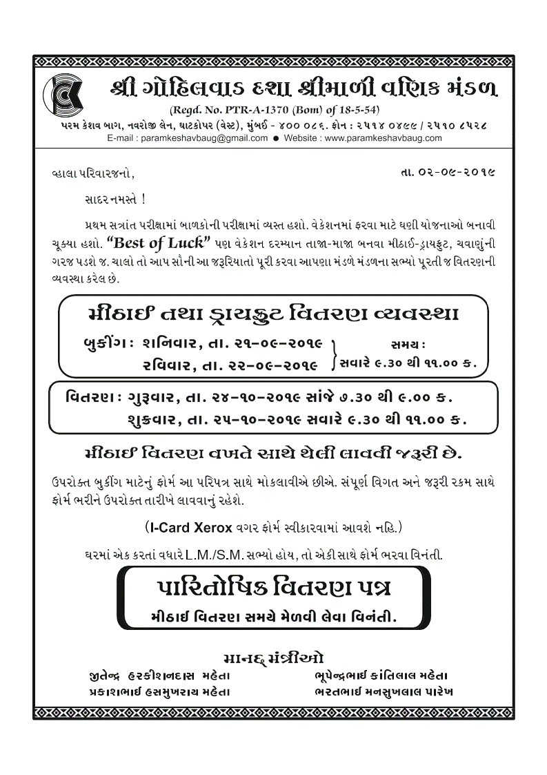 Mahitipatrak Circular and Form
